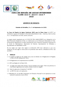 La Copa de España de Aguas Interiores 2022, para las Clases ILCA4, ILCA6 e ILCA7, se celebrará en aguas del Embalse de Borbollón (Santibañez el Alto – Cáceres), los días 8 a 11 de Septiembre de 2022.